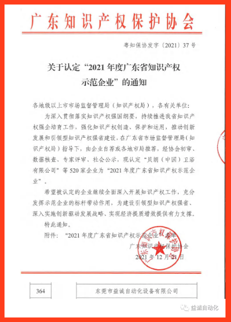 榮獲“2021年度廣東省知識產(chǎn)權(quán)示范企業(yè)”稱號